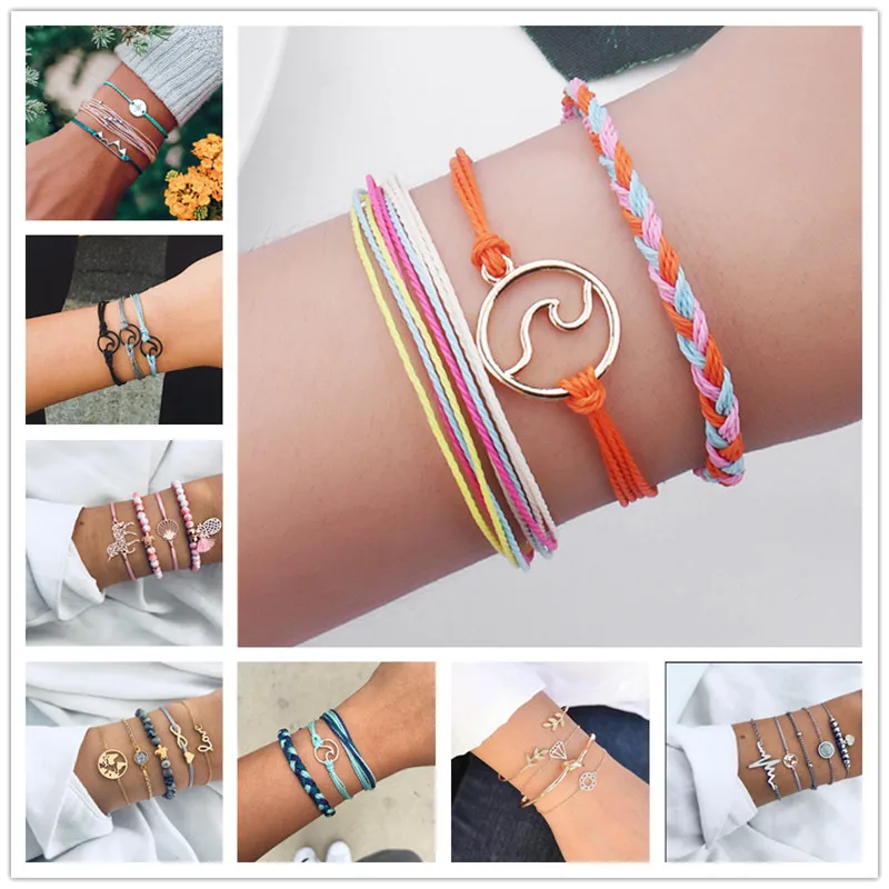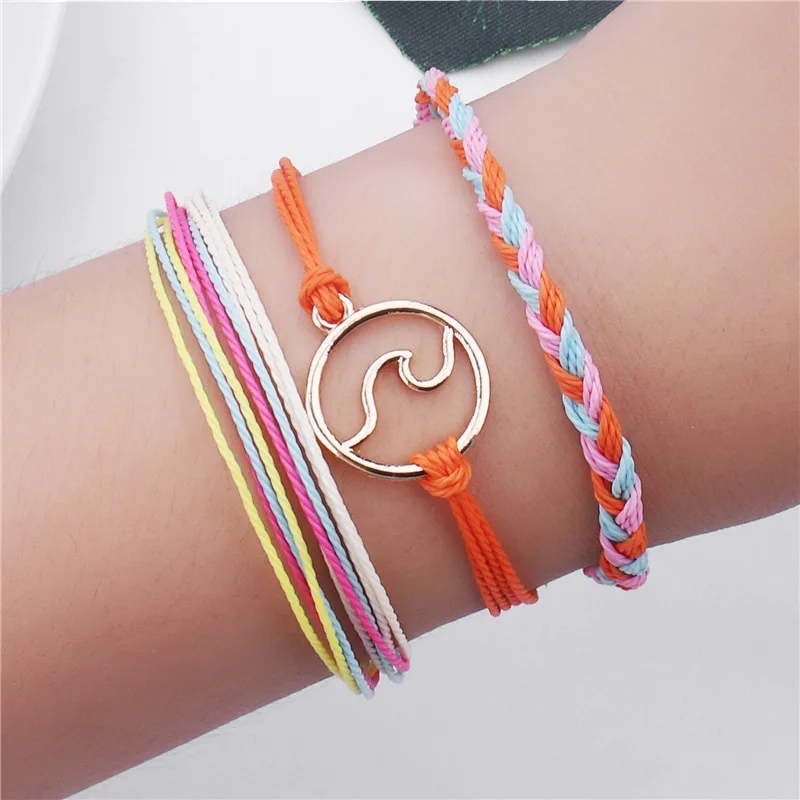 Best Pure Life Hippie Boho Beach Surf Bracelets Handmade wave charms Friendship bracelet string Adjustab