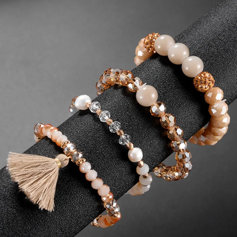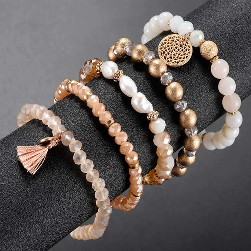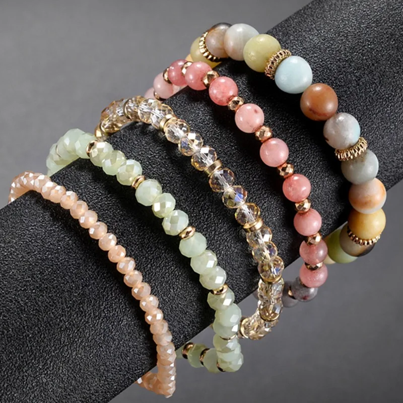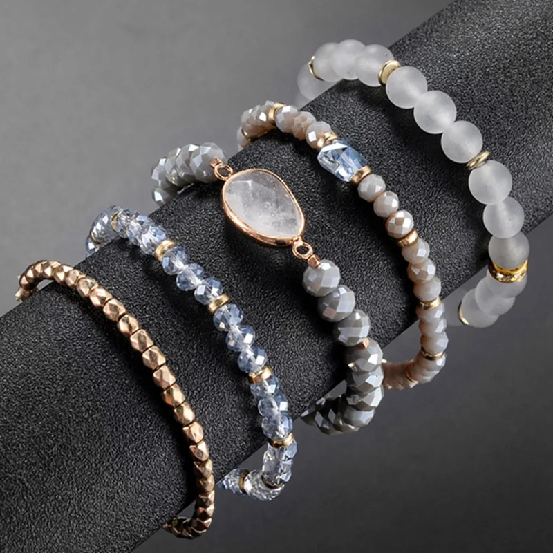 Buy Bohemian Multilayer Bracelet Bangles Sets Natural 5Pcs Natural Crystal Stone Jewelry Stainless stee