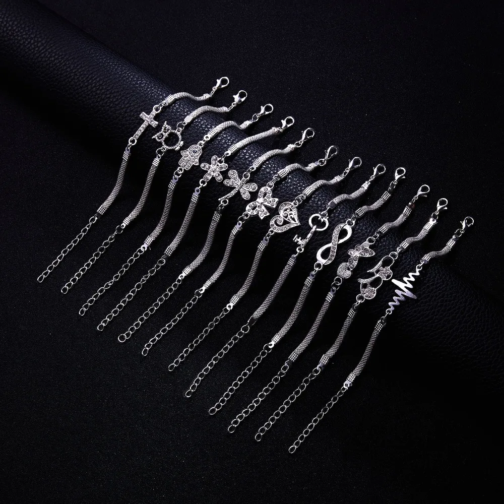 New 12 Styles Silver Charm Bracelets Owl Dragonfly Butterfly Animal Chain Bracelets Love Heart Palm Ban