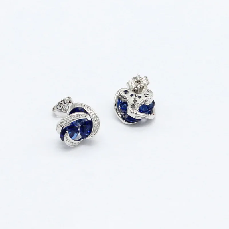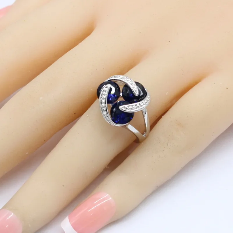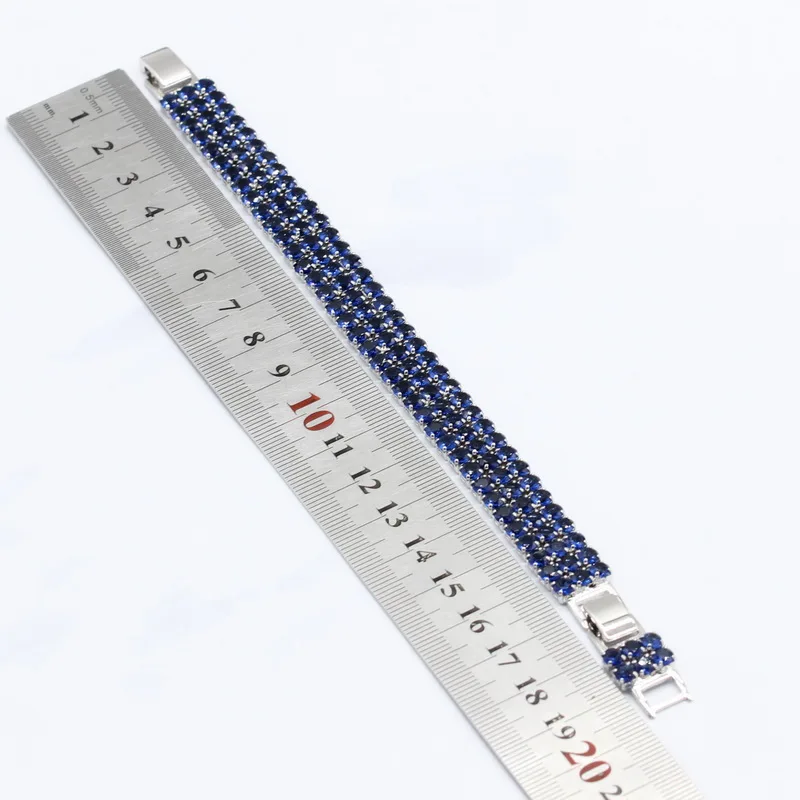 Promo 925 Silver Bridal Jewelry Sets For Women Round Dark Blue Crystal Bracelet Stud Earrings Necklace Pe