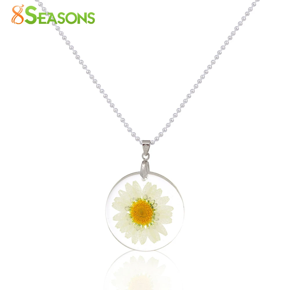Promo 8SEASONS 2020 Handmade Boho Transparent Resin Dried Flower Daisy Necklace Ball Chain Silver Color W