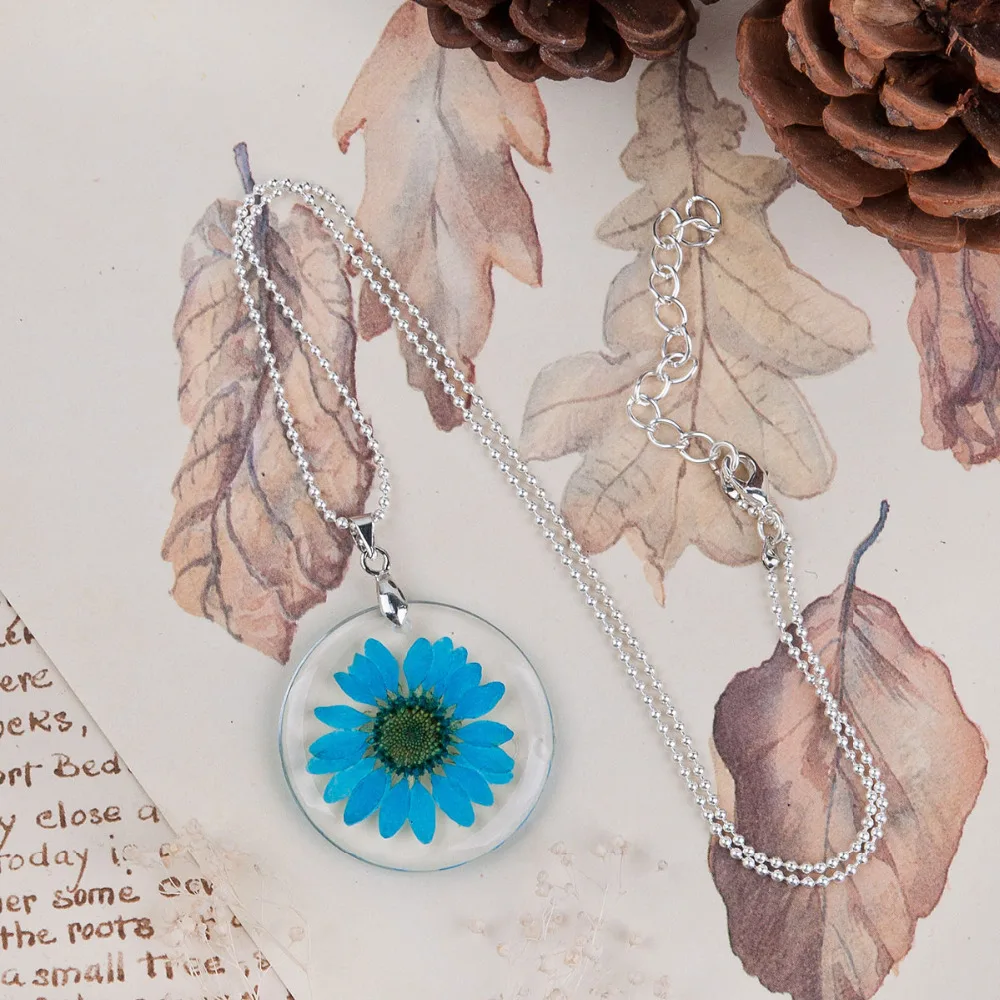 Buy 8SEASONS 2020 Handmade Boho Transparent Resin Dried Flower Daisy Necklace Ball Chain Silver Color W